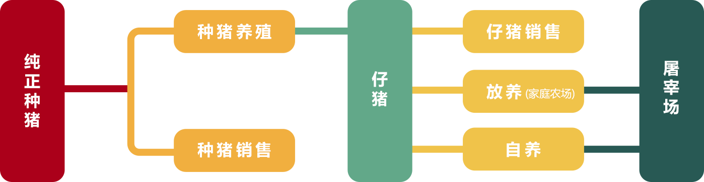 現已逐步實現從祖代育種、父母代擴繁、商品代養殖、飼料供給、獸藥動保、生物有機肥,到活體與冷鏈物流、生豬屠宰、肉制品深加工的資源整合與產業布局。